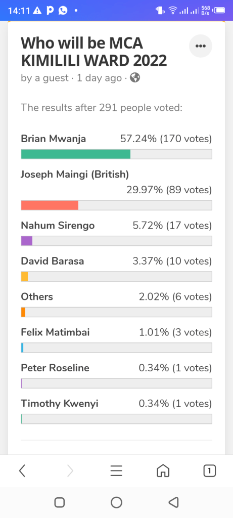 Leaders who participated in the online polls included the incumbent MCA Hon David Barasa, Peter Roseline, Joseph Maingi (British), Felix Matimbai, Nahum Sirengo, Timothy Kwenyi among others.