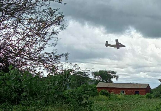Aircraft spraying at locusts