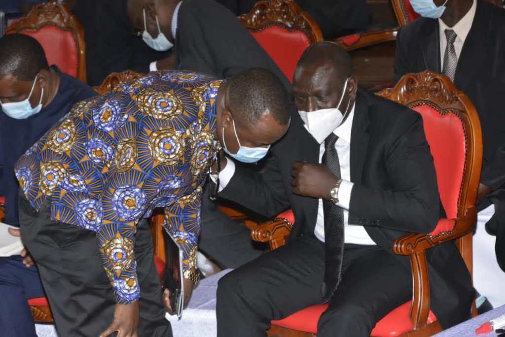DP Ruto sharing a word with Hon Dr Chris Wamalwa, MP Kiminini